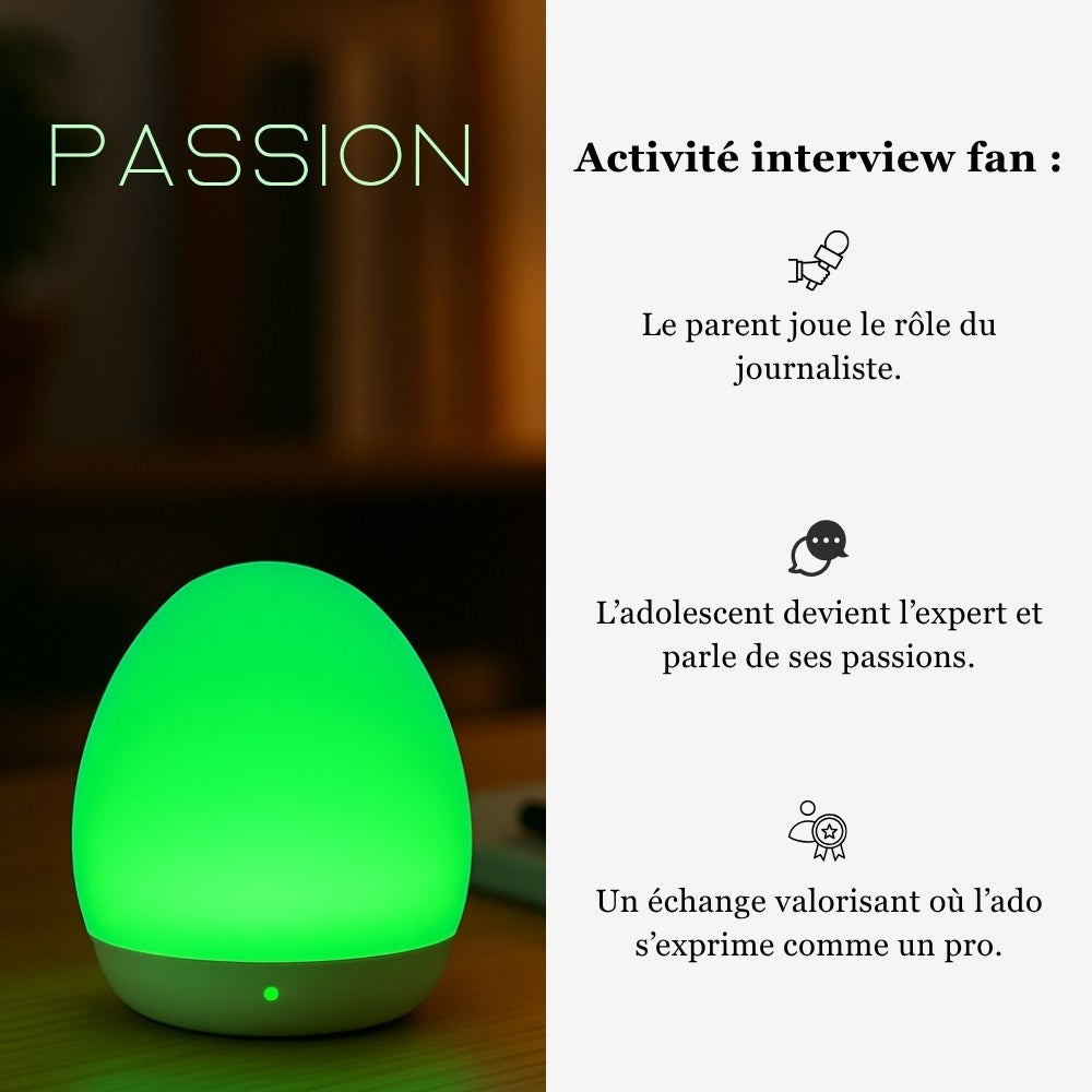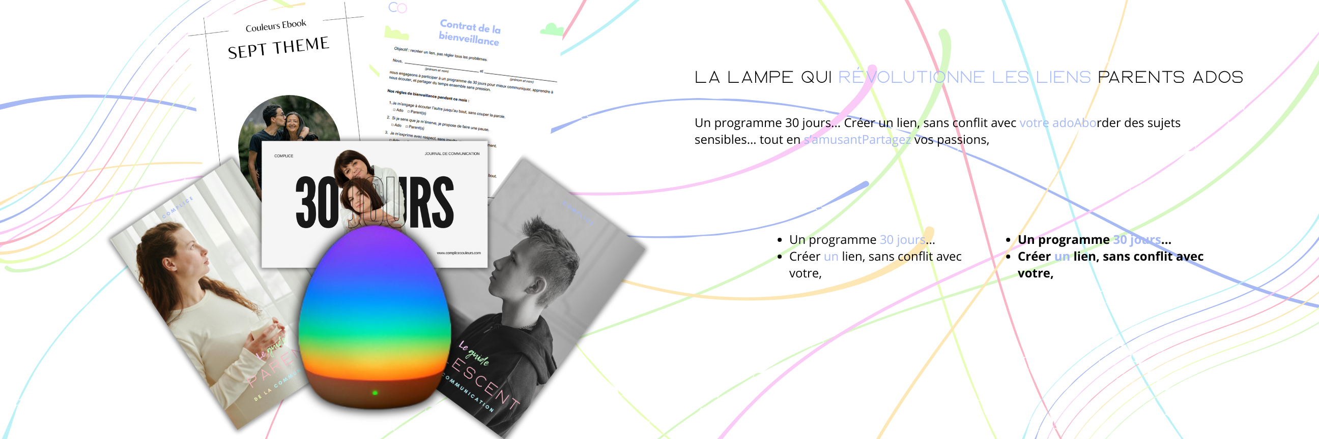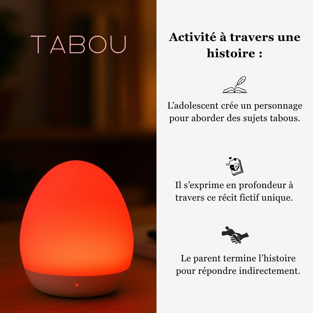 Une lampe à couleurs et un programme de 30 jours qui ont pour but de guider les échanges, de renforcer la complicité et d'installer une nouvelle habitude de communication.